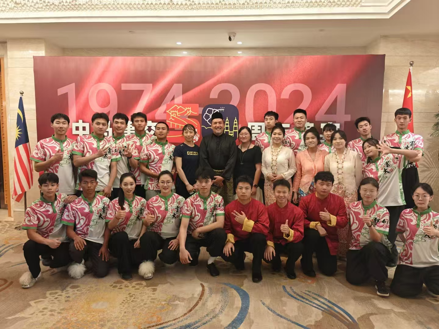 马来西亚驻昆总领事穆罕默德·阿克玛先生(中)在中马建交50周年庆祝活动上与必赢官网马来语专业师生亲切合影