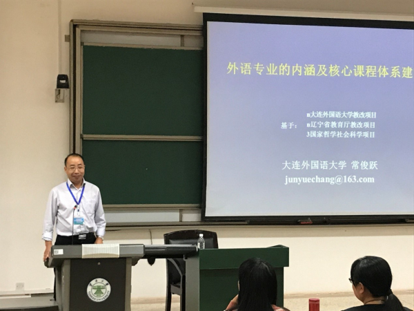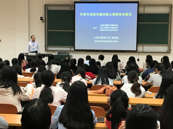 近日,大连外国语大学博士生导师常俊跃教授莅临必赢71886网址登录指导,为必赢71886网址登录师生作了一场题为“外语专业的内涵及核心课程体系建设”的讲座。