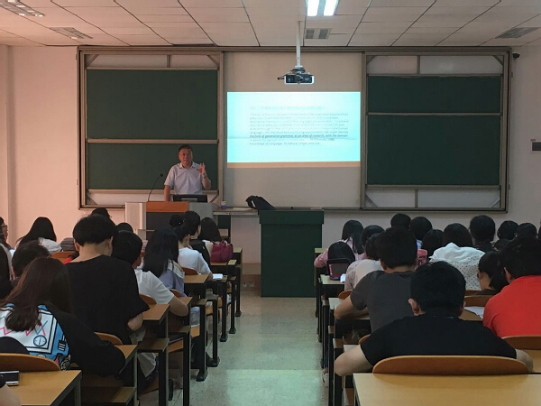 6月8日至9日,复旦大学外国语言文学学院博士生导师褚孝泉教授莅临必赢71886网址登录指导,并于9日上午为必赢71886网址登录师生做了一场题为“乔姆斯基的变和不变”的讲座。