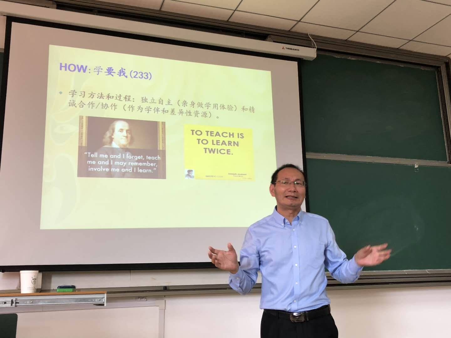 讲座由必赢71886网址登录院长徐志英教授主持。张文忠教授围绕英语教学中赋权和增能的关系展开讲座。张教授提出,英语教学应着眼于“角权责统一,做学用合一,能力内生”。应首先明确学生在教学中所扮演的角色,并由此界定学生的权力,明确学生的责任,使做、学、用三者有机结合,从而从根本上促进英语专业学生能力的提高,使学生个性化全人发展的基础更加厚实。张文忠教授创造性地总结了“赋权增能型英语教育”的“三字经”:要我学(who)、我要学(why)、我学要(what)、学我要(why)、学要我(how)、要我学(whew),生动地展现了“赋权”和“增能”的因果关系。