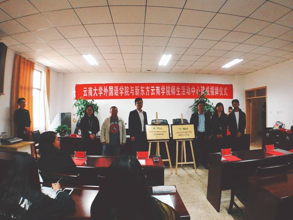 最后,学院领导与新东方云南学校相关人员一起为实习实训基地、师生活动中心揭牌,并合影留念。