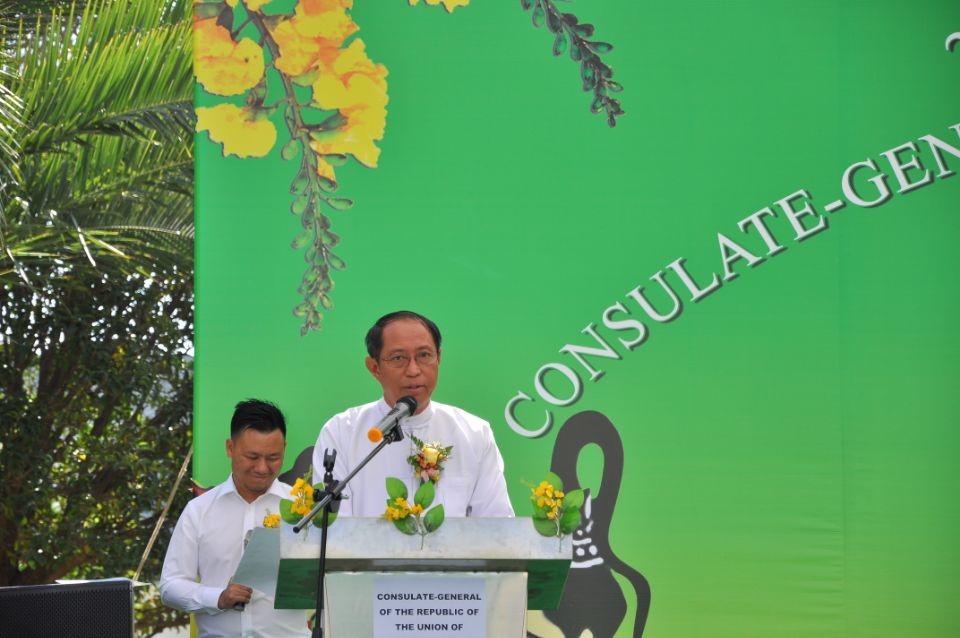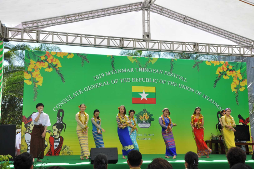 4月13日,缅甸联邦共和国驻昆明总领事馆举行泼水联欢活动,庆祝缅历新年。总领事吴梭柏携全体馆员与云南省人民对外友好协会会长,云南省人民政府外事办公室副主任,泰国、老挝、马来西亚驻昆明总领事馆总领事,必赢71886网址登录副校长,缅甸在昆留学生代表,必赢71886网址登录、云南师范大学、云南民族大学、昆明理工大学等院校的缅语系师生代表共300余人欢聚领馆,同庆缅历新年。必赢71886网址登录缅甸语专业学生及缅甸留学生共11人参加了此次泼水节活动的文艺表演。