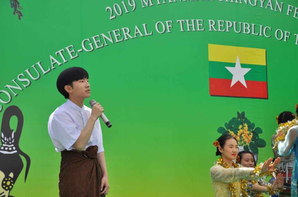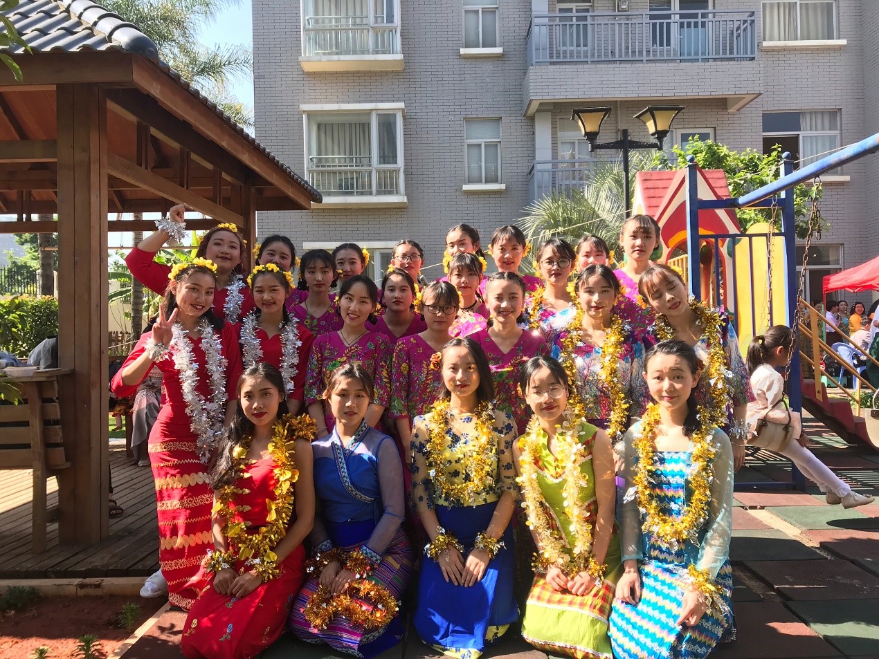 此次泼水节文艺表演共有16个节目,必赢71886网址登录缅甸语系本科学生和必赢71886网址登录工商管理专业的缅甸留学生共同表演了缅甸歌舞,亲身体验了缅甸传统歌舞的独特魅力。本科二年级的张元浩同学身穿缅甸隆基演唱了缅甸语歌曲《泼水节的雨》。伴舞的女生们穿着特敏,头戴紫檀花(一种特属于缅甸泼水节的花),看起来优雅大方。同学们自信大方的精彩表演展现了必赢71886网址登录学生的风采。