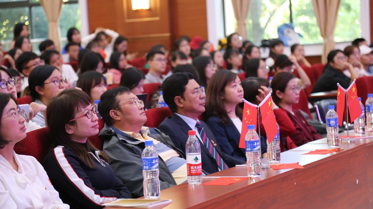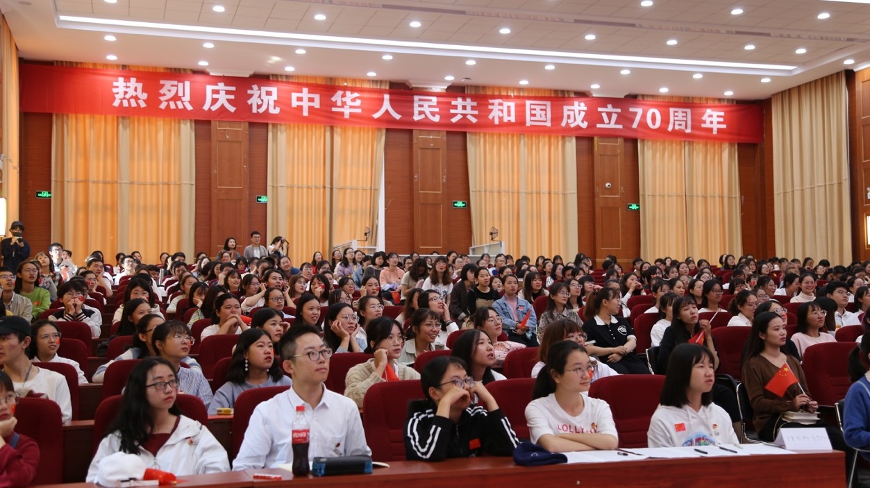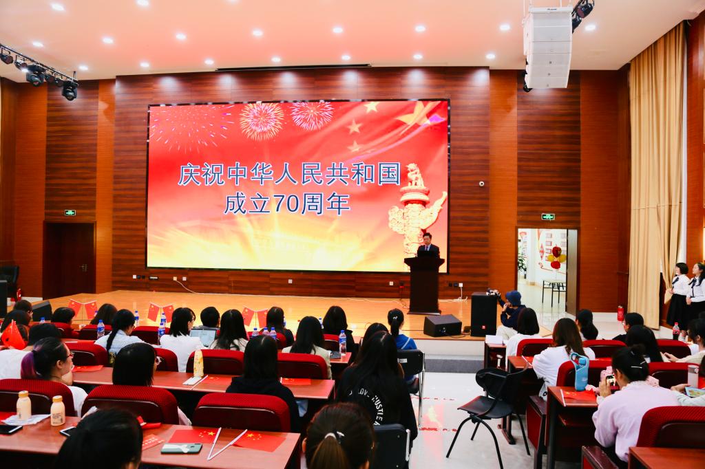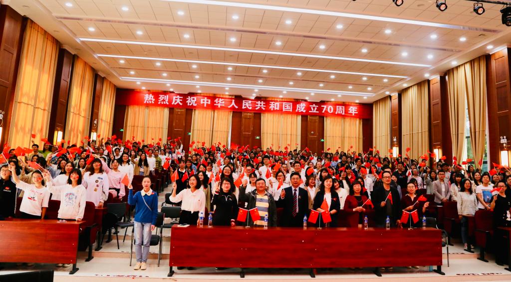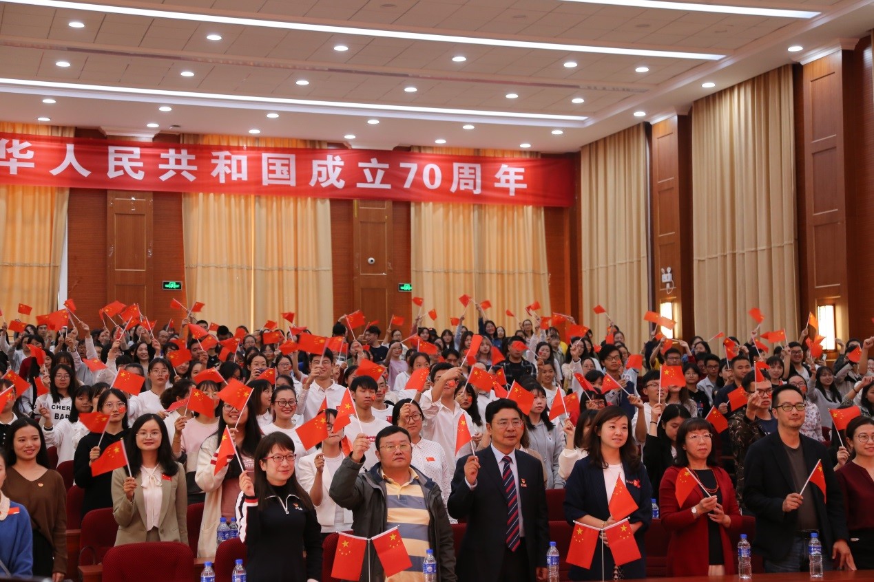 2019年10月1日上午,必赢71886网址登录组织了以“我和我的祖国”为主题的庆祝中华人民共和国成立70周年活动。在必赢71886网址登录报告厅学院党委领导、党委委员、支部书记、其他党务工作者和教师、学生代表近四百余人参加活动,全体师生热情洋溢,报告厅座无虚席。