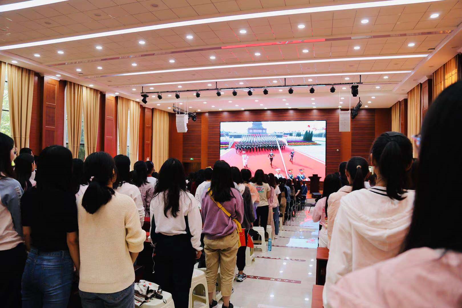 彭荣书记致辞结束后,全体师生收看庆祝中华人民共和国成立70周年大会实时直播。