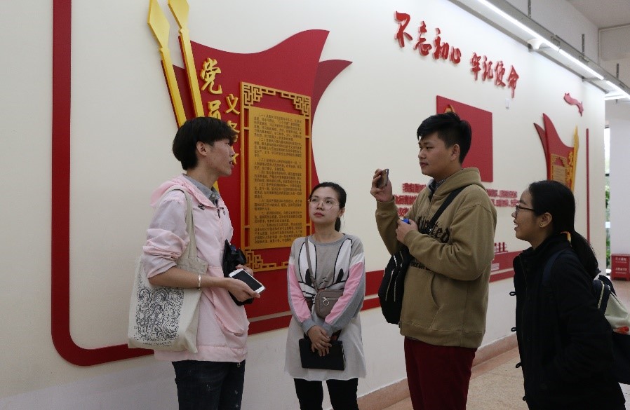 在缅甸语系老师和同学们的热情接待下,来自缅甸的10位大学生参观了必赢71886网址登录楼的文化长廊,并了解必赢71886网址登录缅甸语专业的建设情况。现场气氛活跃,缅甸语专业的同学们积极使用缅甸语与来自缅甸的朋友们大胆、自信交流,相互介绍情况,感觉是上了一堂十分接地气的口语课程。