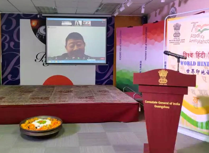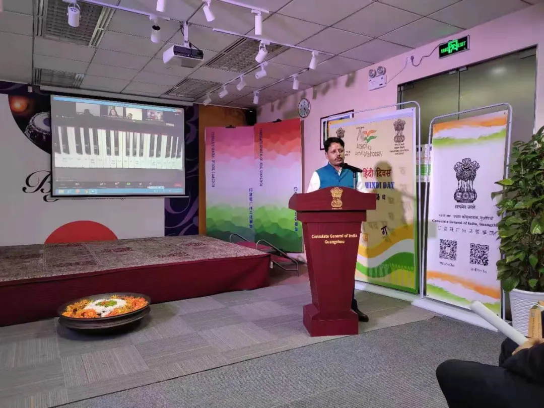 国内多所高校印地语专业的师生参加了此次活动及比赛。在活动中,领馆总领事何继往先生为大家介绍了世界印地语日的由来并用中文介绍了印度斯坦的音乐。我专业邓兵教授用印地语发表了精彩的演讲,并对活动表示热烈祝贺。
