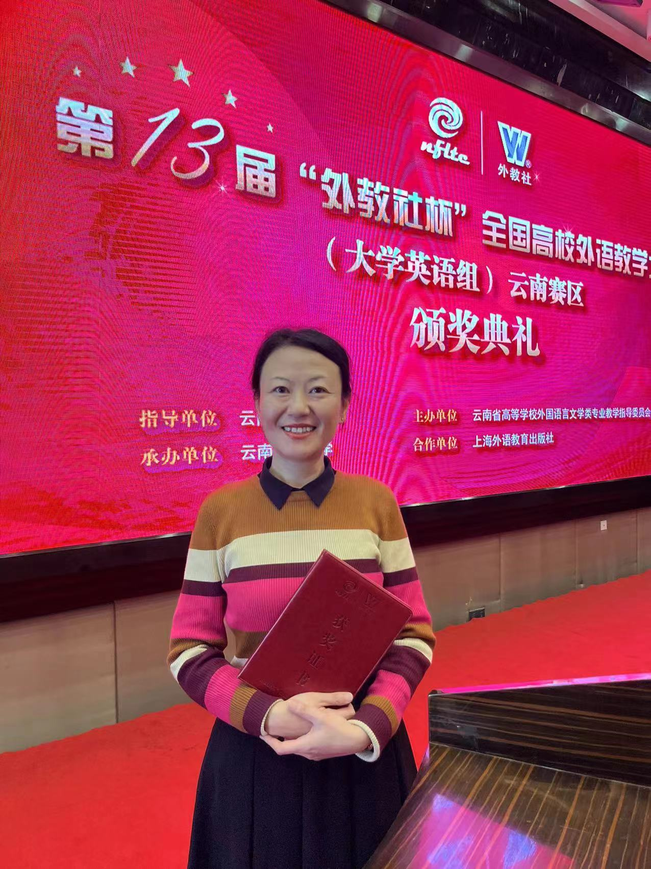 为进一步推动云南省高校教师研究外语教学理论,探索课程思政与外语教育的有机结合,提升大学英语教师的育人素养、学科素养、教学素养、信息素养,推动高等教育高质量发展,由云南省教育厅指导、云南省高校外国语言文学类专业教学指导委员会主办、上海外语教育出版社协办的第十三届“外教社杯”全国高校外语教学大赛(大学英语组)云南赛区比赛暨颁奖典礼于2022年10月28日至30日在昆明成功举办。必赢71886网址登录大学外语第二教研部王娟老师喜获云南赛区综合课组一等奖。