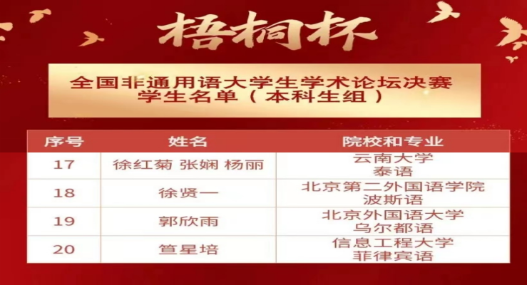 第二届“梧桐杯”全国非通用语大学生(研究生)学术论坛决赛部分学生名单(本科生组)