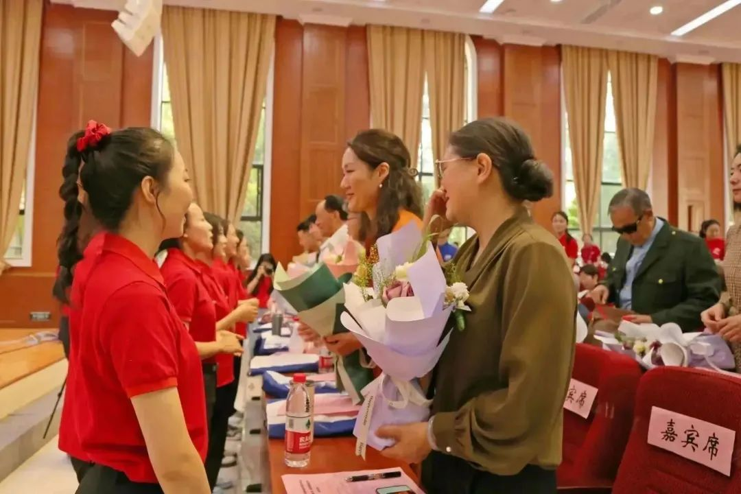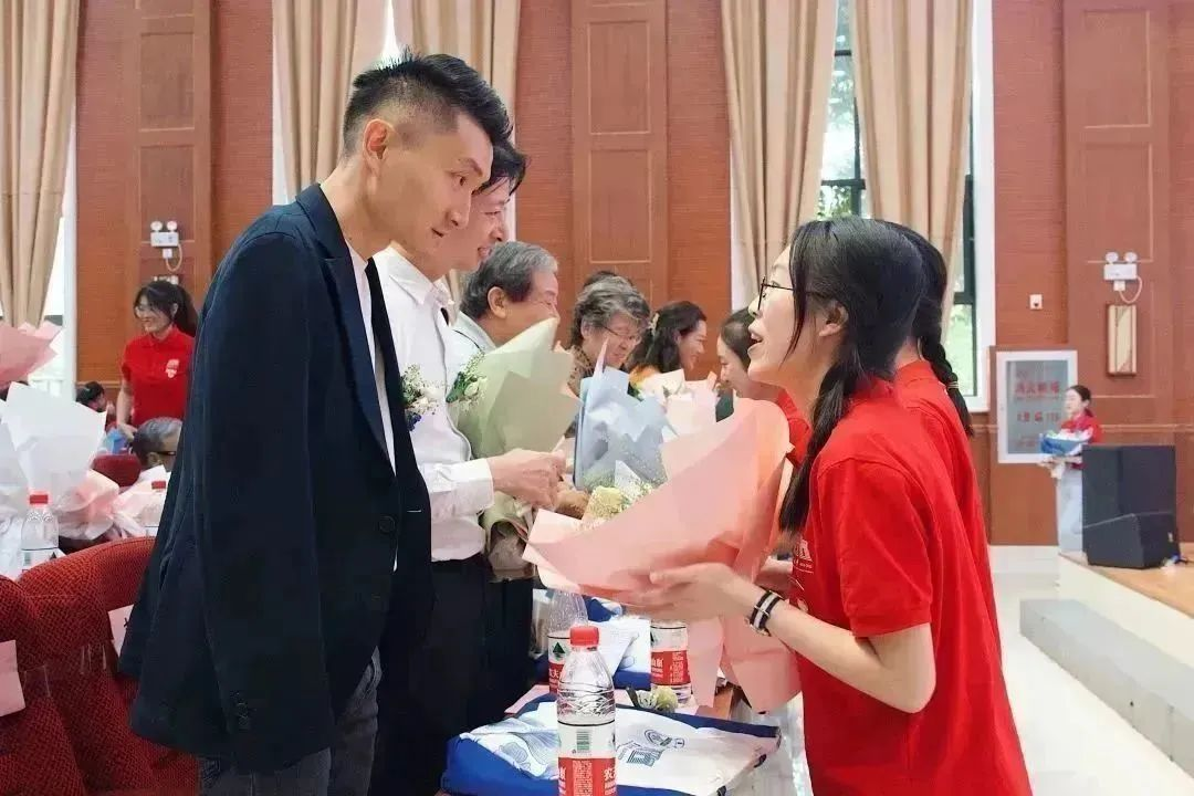 最后,必赢官网在校学生代表向资深校友献花致敬。
