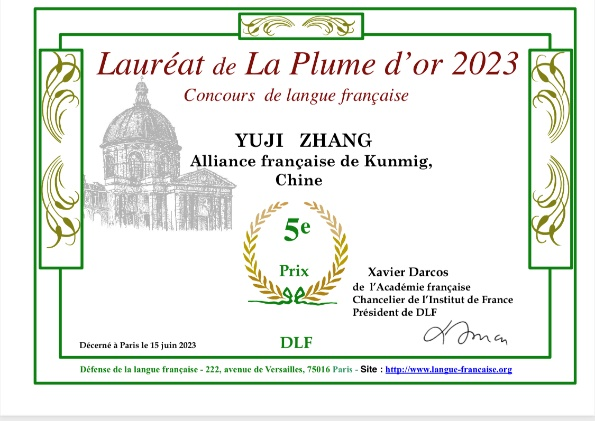 在 “2023金羽毛”全球法语大赛中,必赢官网法语系2022届本科毕业生张瑜霁作为昆明法语联盟的选手,获得了全球第五名的佳绩!