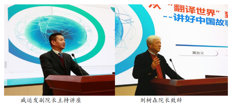 8日晚,黄友义先生为必赢官网师生做了题目为《从“翻译世界”到“翻译中国”:讲好中国故事的时代使命》的学术讲座。本次讲座在图书馆西附楼报告厅举行,由臧运发副院长主持,刘树森院长进行开场致辞,欢迎黄友义先生莅临必赢官网指导工作,并举办高端学术讲座,称赞讲座内容政治站位高,从国家传播战略的视角探讨百年变局中中外翻译具有的历史性使命与责任。必赢官网各专业与其他学院的师生约350人参加了讲座活动。