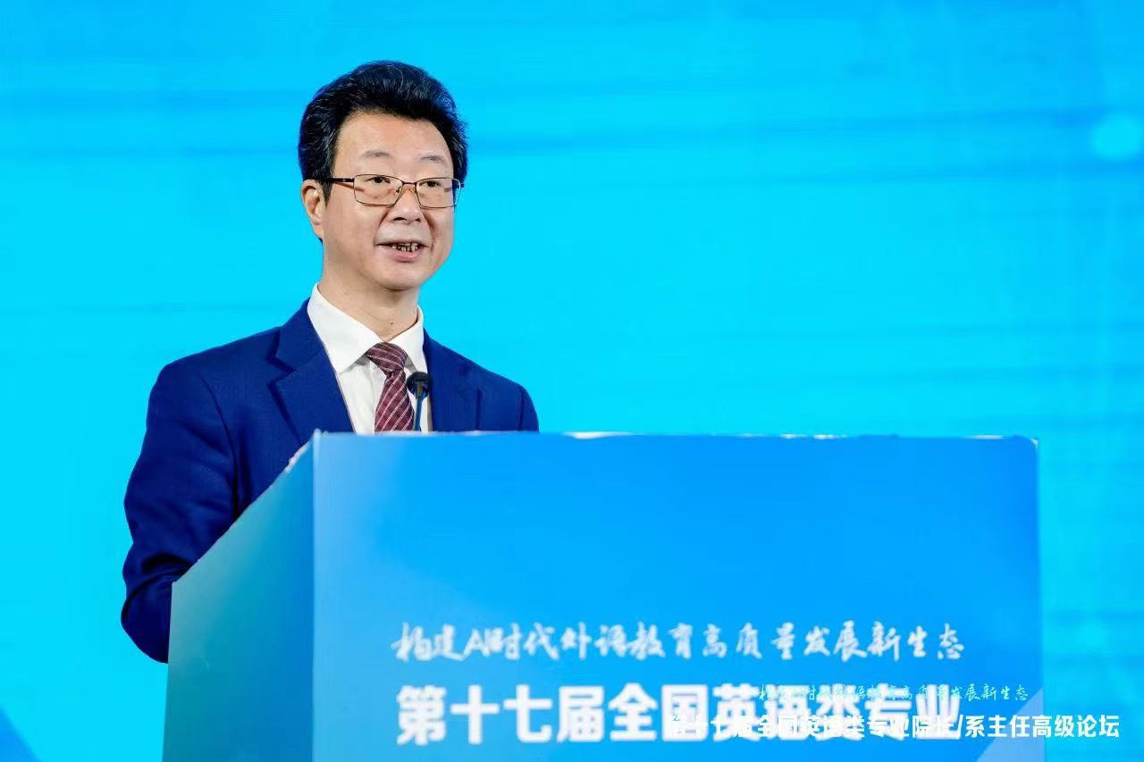 在随后的主旨报告环节,多位专家从不同角度为与会教师带来了数字时代的新思考、新方向。专家发言的内容包括数字时代的内涵、外国语大学新文科发展战略、外语学科的本体建设、外语学科的融合发展、外语专业学生国际传播能力培养、外语学科产教融合实施策略、人工智能背景下英语专业四八级考试的新发展、外语学科多元评价体系建设等诸多议题。