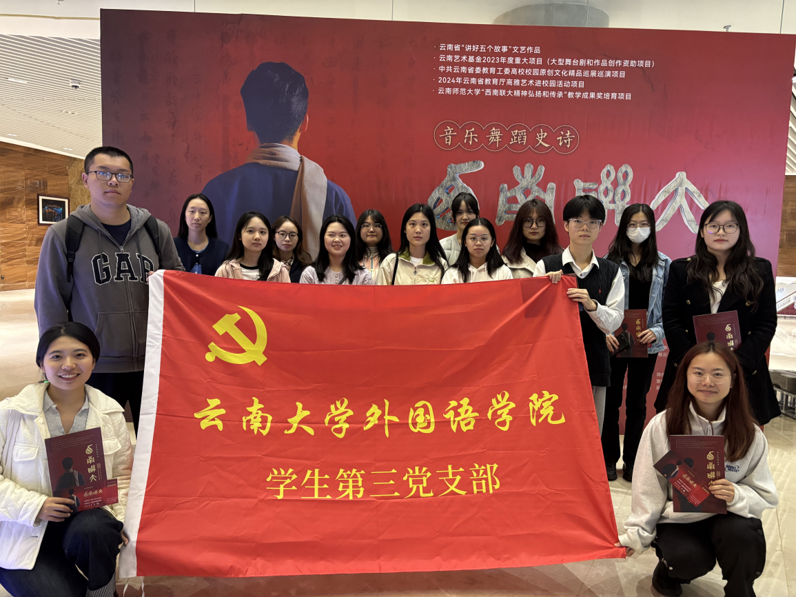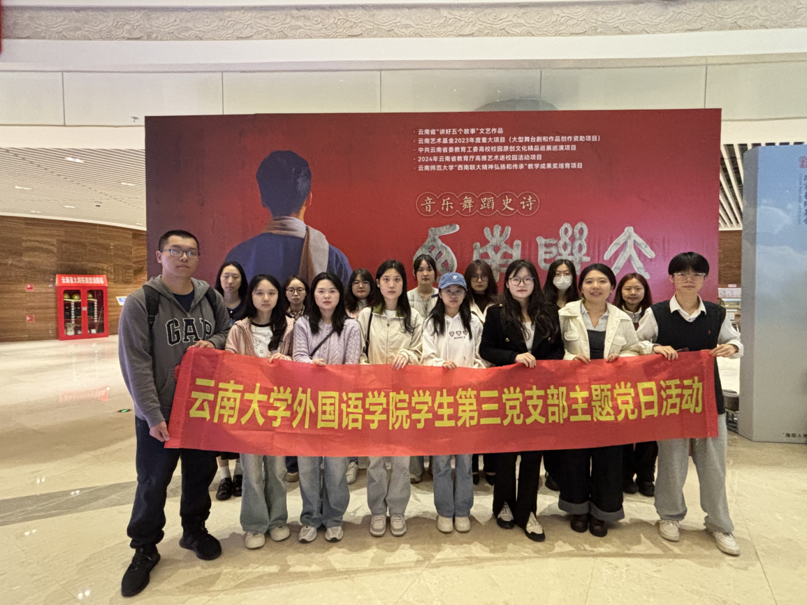 10月24日,必赢71886网址登录学生第三党支部成功举办了一场意义非凡的主题党日活动。党员同志们在党支部书记安妮老师的带领下共同前往云南省大剧院观赏了《西南联大》舞台剧,经历了一场穿越时空的历史之旅与精神洗礼。舞台上生动的演绎,让党员们重温了西南联大那段荡气回肠的历史,深切感受到了先辈们在极端困苦环境中坚守学术自由、矢志追求真理的高尚情操。